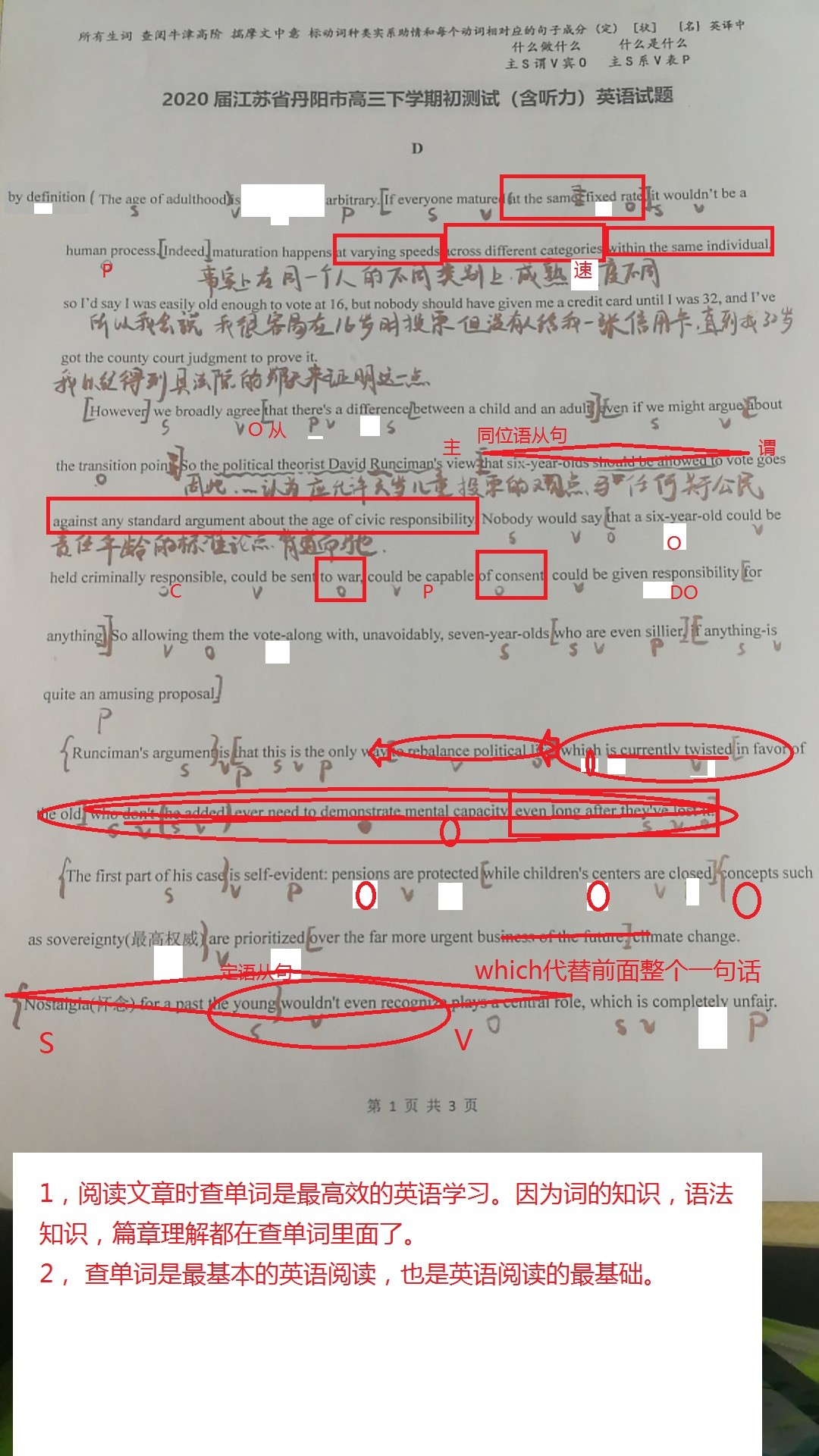 二 1 所有生词 查阅牛津或朗文高阶,词典里单词意思放在上下文反复理解,揣摩文中意; 2标动词种类实系助情和每个动词相对应的句子成分(定)[状]{名},划清句子成分,理解吃透长难句; 3英译中,文章反复理解,文章和题目意思都理解透彻后再做题目。