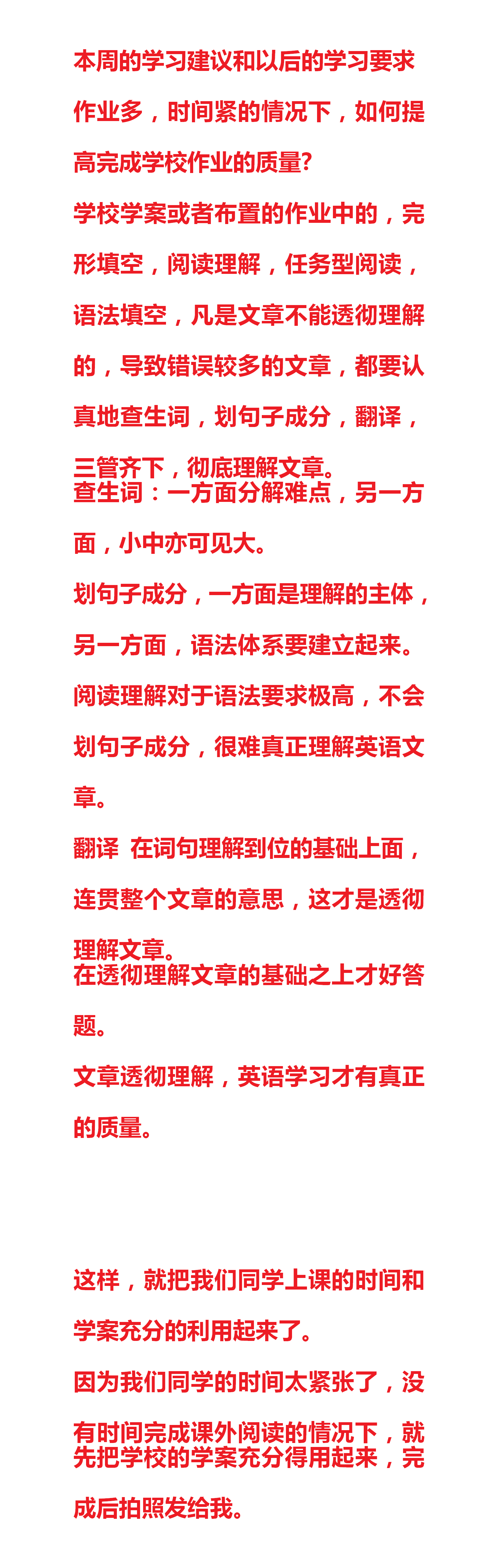 2,每周来校上课一次2小时语法习题课,或者阅读理解全文句子成分分析,吃透英语语法,并用句子成分分析的方法解决长难句,从而理解文意。